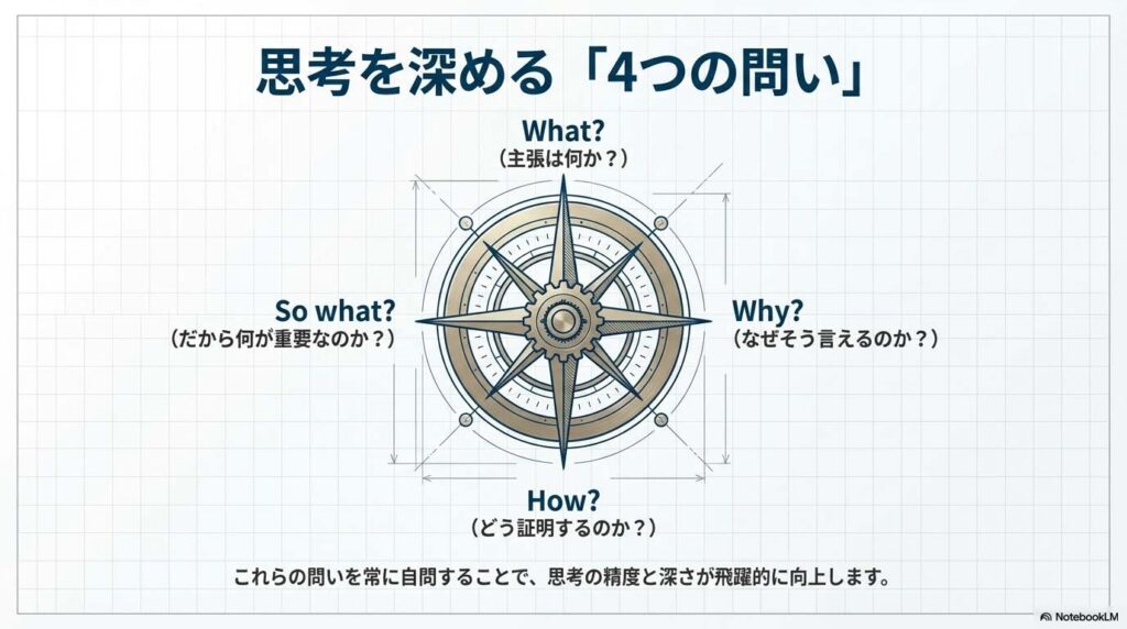 この課題を解決する鍵は、実は「批判的思考(クリティカル・シンキング)」にあります。これは単に物事を批判的に見るということではなく、情報を多角的に分析し、論理的に深く考えるためのスキルセットです。