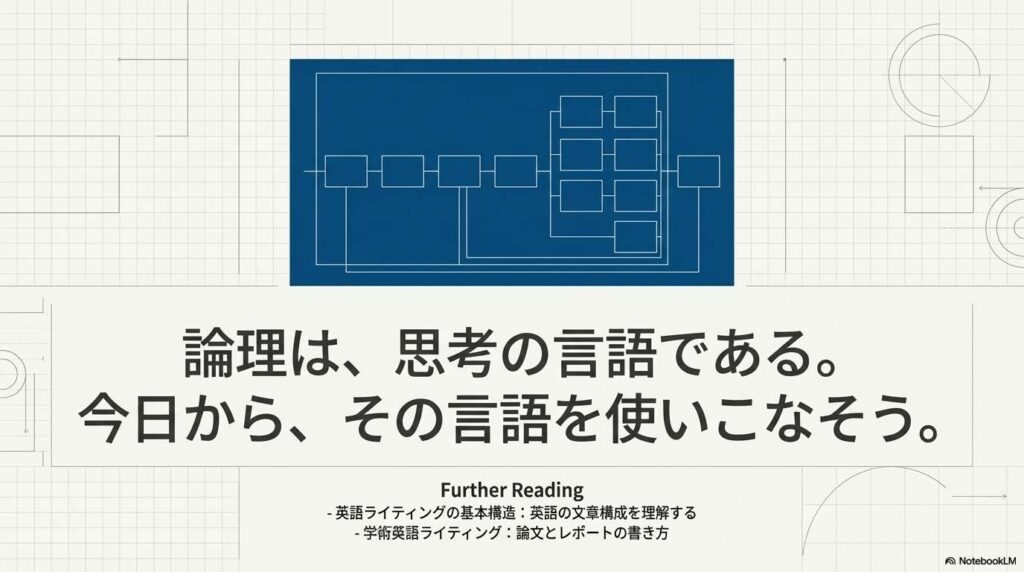 今回学んだパターンを意識するだけで、他人の意見をより深く分析したり、自分の考えをより明確に伝えたりすることができるようになります。論理の基本を理解することは、日々のコミュニケーションや意思決定の質を高めるための、強力な第一歩となるでしょう。今日からあなたの「思考の解像度」を上げていきましょう。
